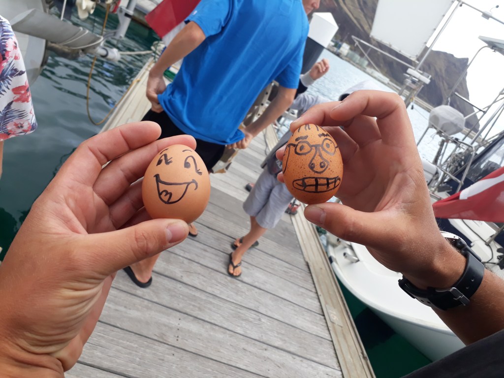 Later that day, on the 11th April, Karakter arrived and we also met another boat, the “Vela”, a nice Danish family with three boys. The following days were filled with sunshine, so we enjoyed this cute island on foot and by bike, and did lots of sunbathing, BBQ on the beach, swimming and bodysurfing! On the 14th April, we performed a Danish Easter tradition; everyone paints one boiled egg and then you roll them over a cliff. The person whose egg reaches the furthest without breaking is the winner! Although a kids’ game, we had lots of fun and laughter!