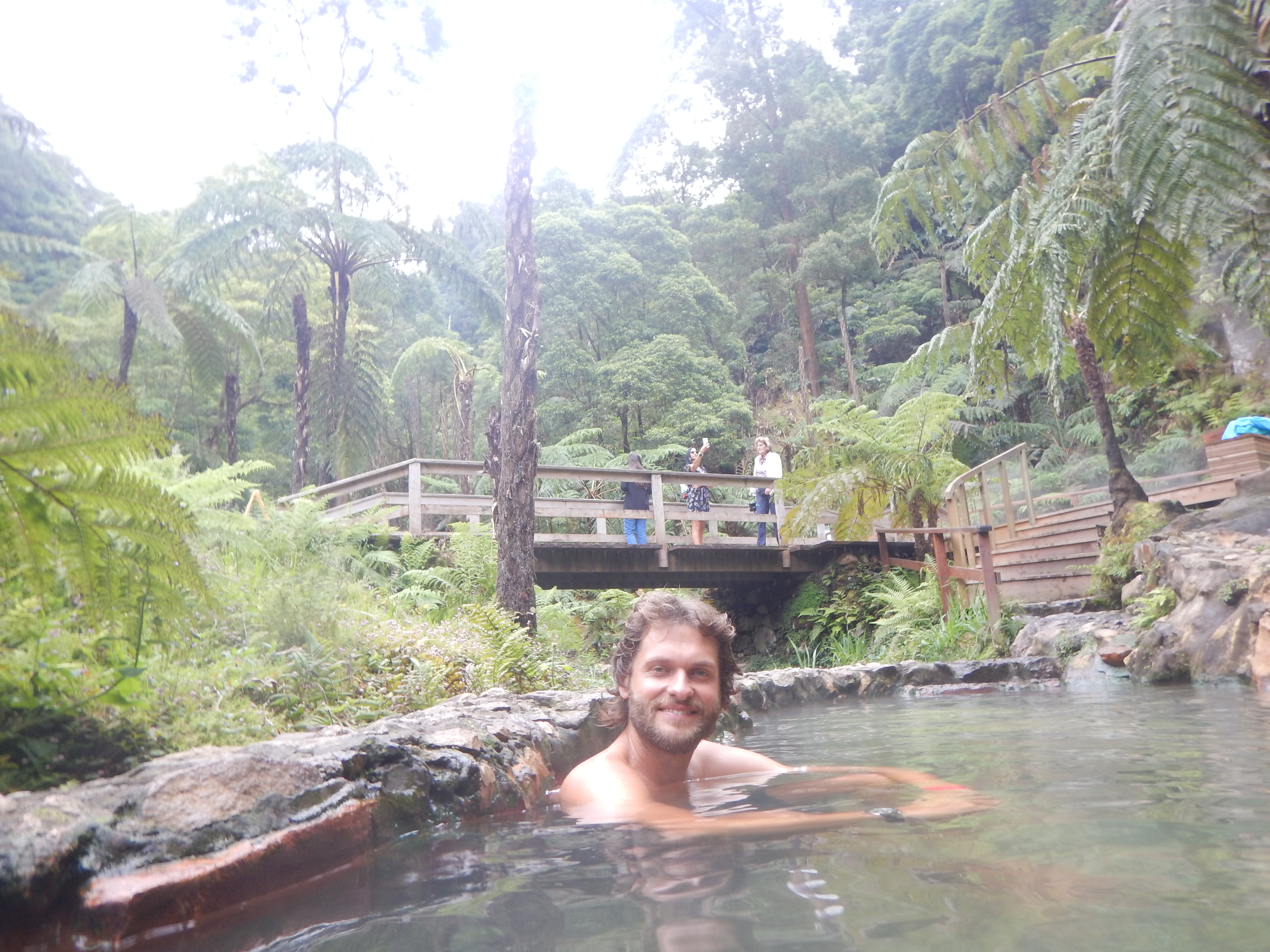 We met our friends Robert and Janine from Mangata the same day and we had a pancakes night at our boat, while planning our activities for the next day.On the morning of 21st May, the four of us took the local bus and after a 45-minute tour across the island we reached Furnas. Furnas is a famous place due to its volcanic ground which is used by locals to cook stew meals by burying their hotpots underground. It is a beautiful area, with a large lake and green hills, which we explored on foot! The highlight of the daytrip however, was the hot springs, where we bathed in 40 Celsius water, in 7 different natural pools! What a day!
