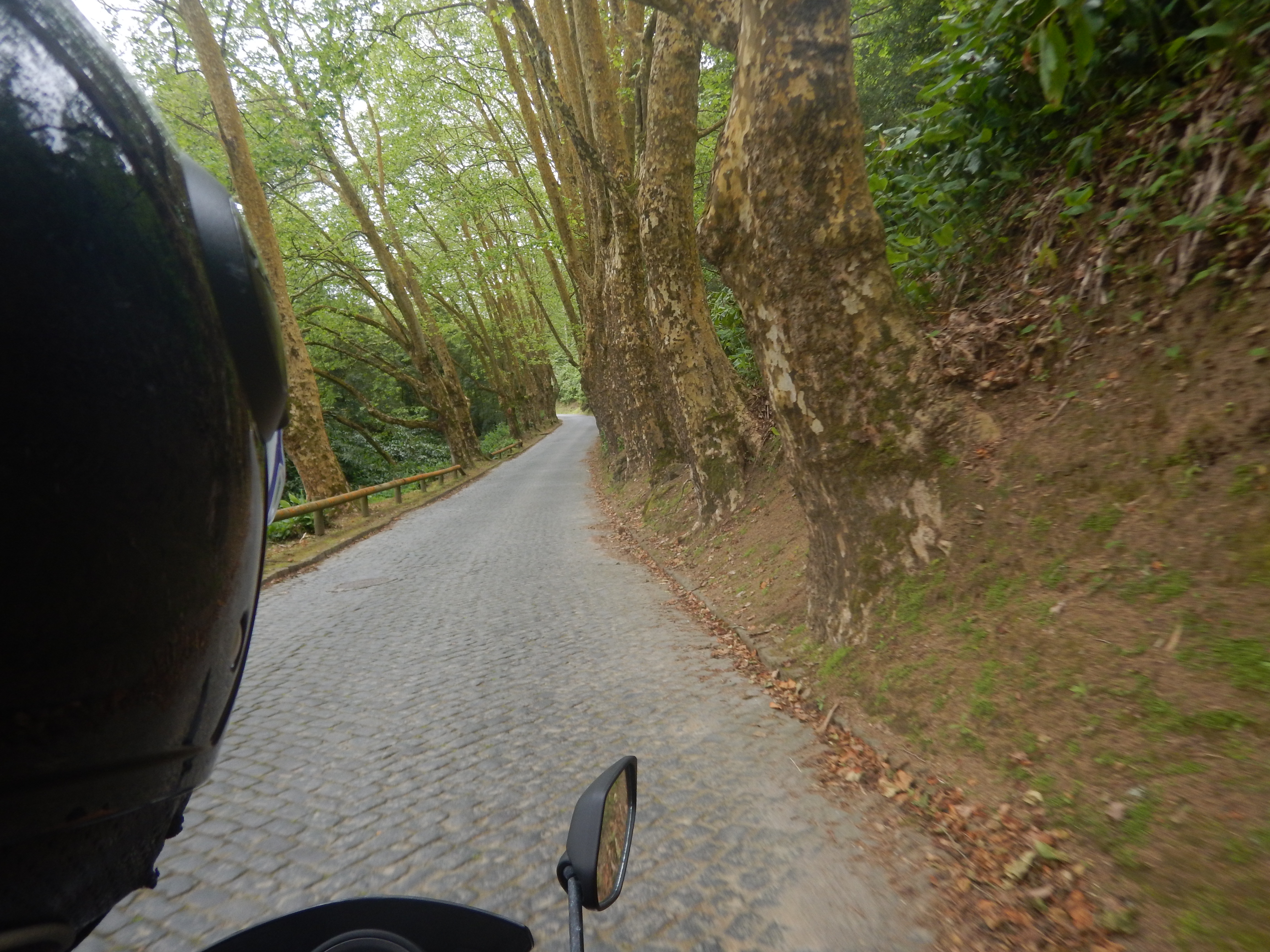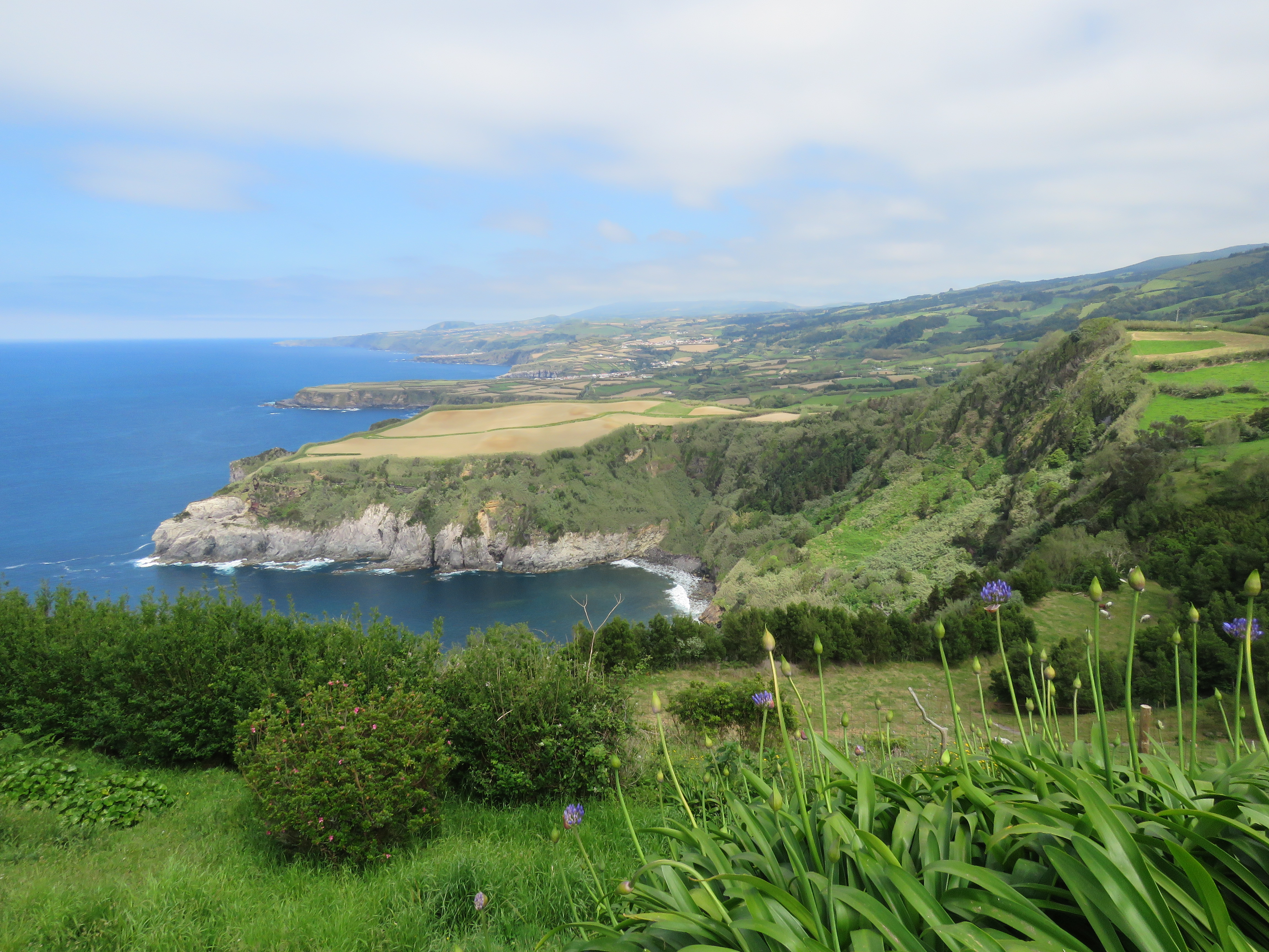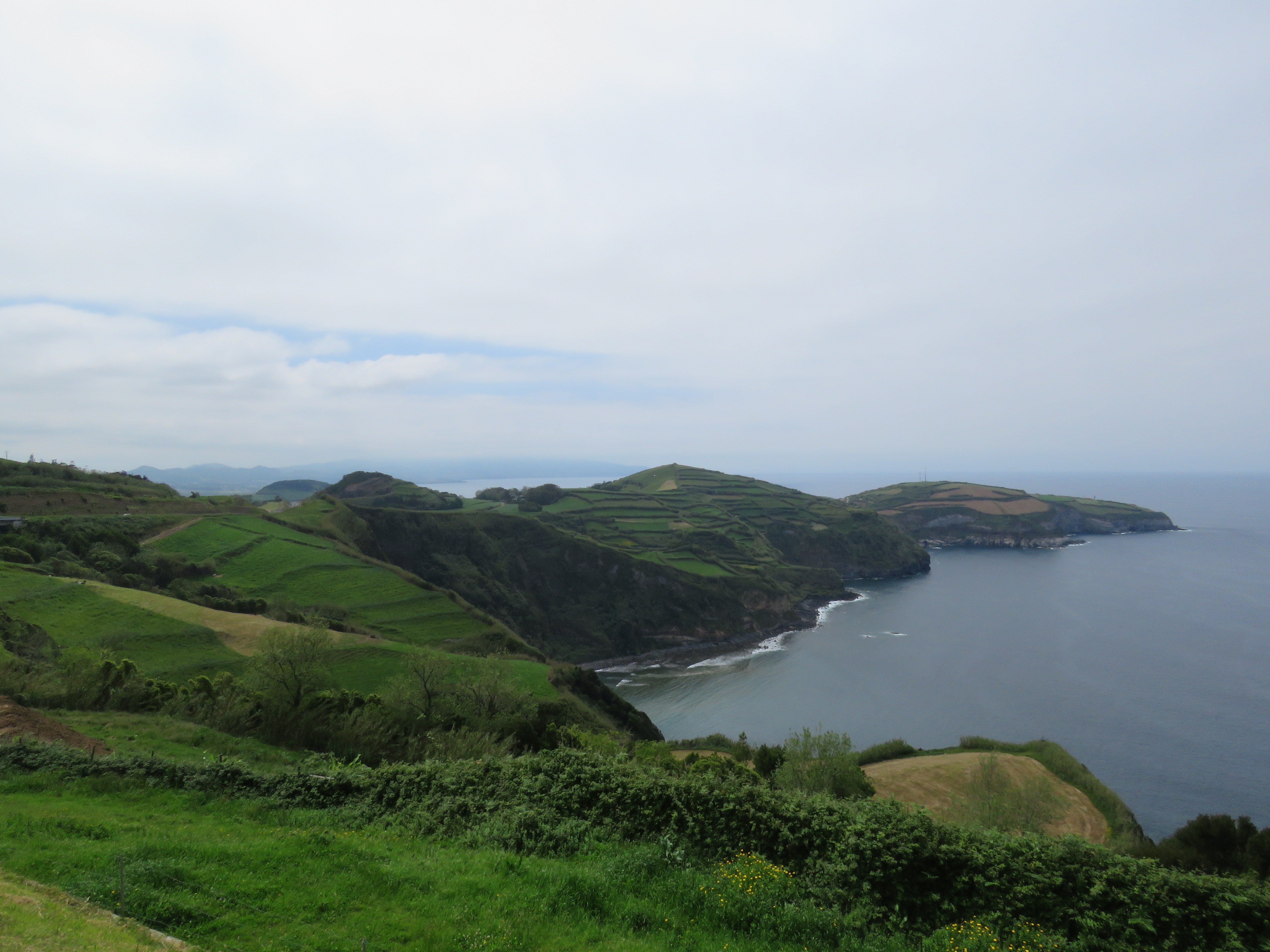 The next day we toured the center of the island. Our first stop was “Lagoa de Fogo”, a lake surrounded by high mountains and windy roads. Our next stop was at “Caldeira Velha”, our second thermal bath experience, where we also dipped under a waterfall! We then visited Ribeira Grande, the second biggest city of the island, a seaside town, with nice buildings and smiling people, where we had our homemade lunch. We then took a scenic route through unpaved roads, goats stopping the traffic, and tall trees almost obscuring the view all the way down to “Lombadas”, a magnificent valley with a tiny river and all-sizes hills, mountains and canyons. Truly breathtaking! We had our afternoon coffee at marina “Villa Franca do Campo” and we returned to our marina through the seaside route. Another great day!