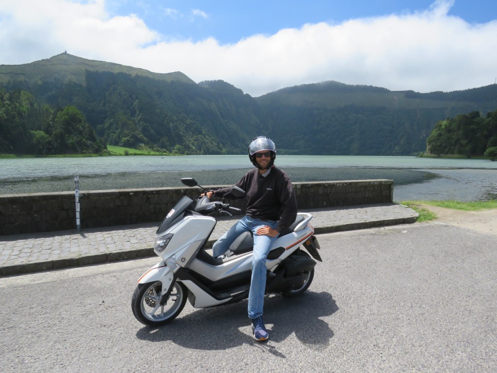 On the 25th May we rented a Yamaha Nmax 125 scooter, a very powerful scooter for two people! We decided to split the island in three parts so to maximize our sightseeing in 3 days. We started with the eastern and the most known part, the “Sete Cidades”. The “Sete Cidades” are two volcanic lakes which in reality are one, but to the different vegetation and sunlight, they look like one blue and one green. We drove all around the lakes, hiked and had a modest lunch in the green lake. Words cannot describe the beauty of the landscape, all types of plants, trees, mosses, green valleys and impressive lakes. We continued towards the lighthouse “Ponta do Escalvado” and the natural rock pools “Mosteiros”. After a small walk, we decided to drive back via the northern route, with a small stop in Santo Antonio and back to Ponta Delgada.