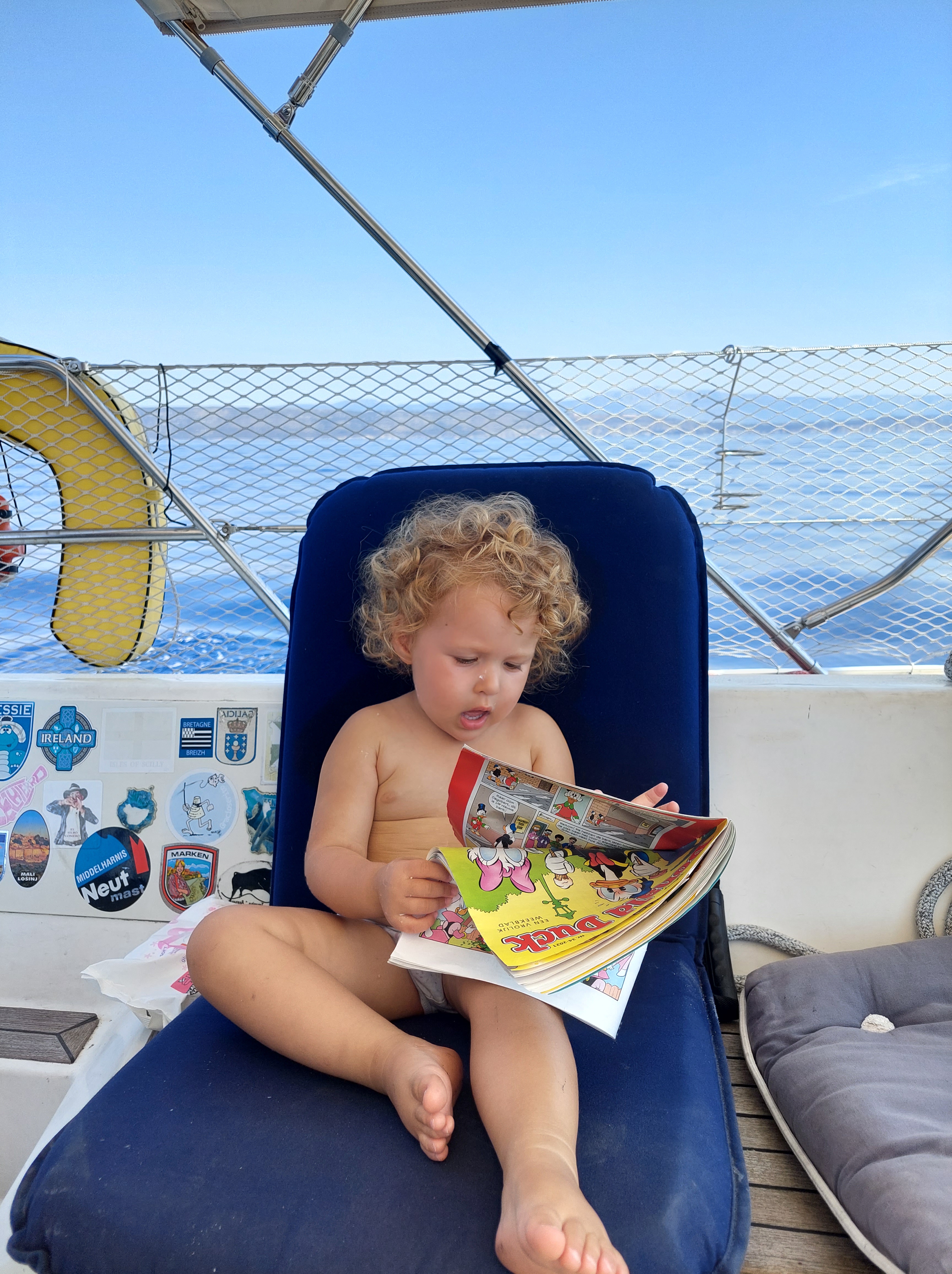 It would have been the best day if only upon our return to the harbor we did not have to witness Libra violently moving up and down in the dock while the swell pushed water all over the promenade and the threatening storm did not loom over us. Jelle quickly jumped on board and re-arranged our mooring lines, placing stronger ones and also tying one extra line to the boulder. Meanwhile, hard rain started pouring down on us, and Elena and I had to take shelter in one of the neighboring cafes. The rain was pouring hard, Jelle was onboard, collecting all things on deck and, crazy as he is, actually taking advantage of the rain and cleaning the deck with a broom, and I was stuck under a tent in a cafe, with a stroller full of stuff and Elena wanted to play out in the rain. And amidst this panic, not one single person did not offer us an extra seat ( there were many!) at their table. Never have I ever felt more unwelcome somewhere. Luckily, after a while, the thunderstorm stopped and the swell calmed down enough for us to jump onboard. This was probably the highlight of the whole ordeal, as our jumping to the boat was loudly applauded by our neighboring boat of Germans and English who were extremely helpful to begin with. We were fine, Libra was fine and after a bit, we managed to get a shut eye but not before promising to each other to never let the boat unattended for so long before double checking the Navtex warnings.