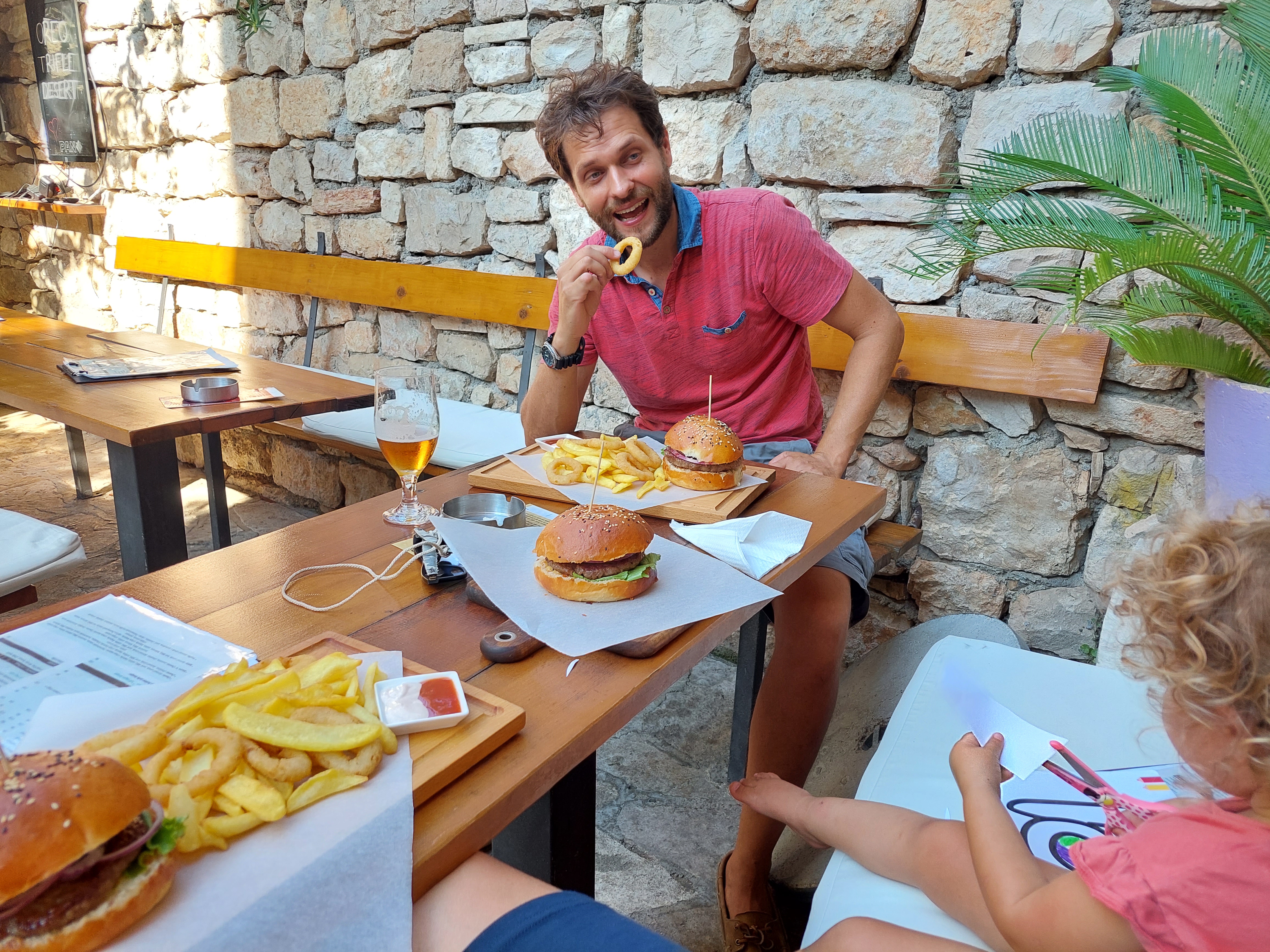 We spent two days in the anchorage so Jelle could work while Elena and I explored the city. Supertar was unusually familiar, with its stone buildings, purple flowers on the balconies, and many bars on the promenade. Having visited multiple islands in Croatia by now, you get this familiar feeling of Déjà vu. Moreover, this island reminded me of Chalkidiki and made me longing for my home country. Not far away now!