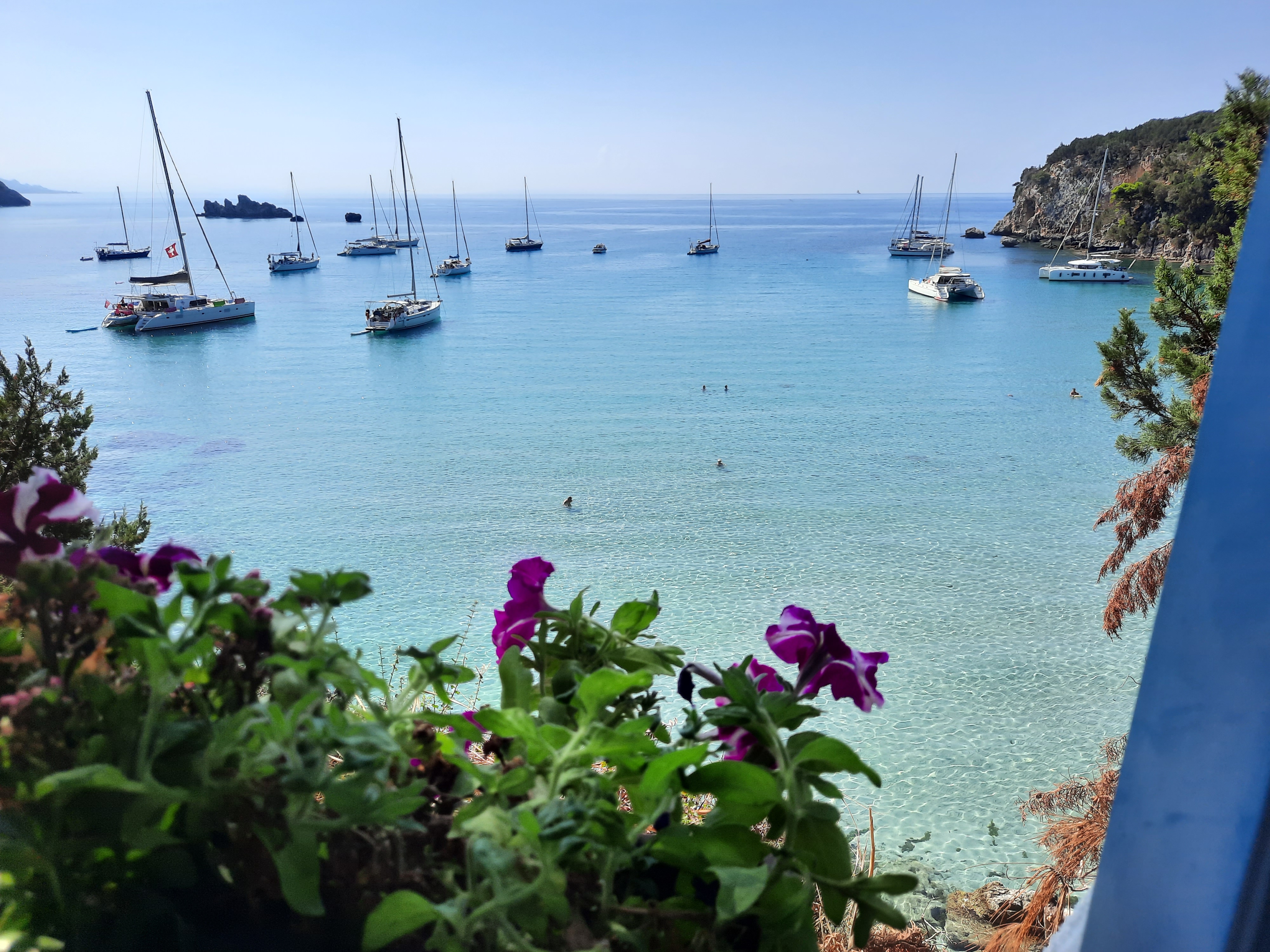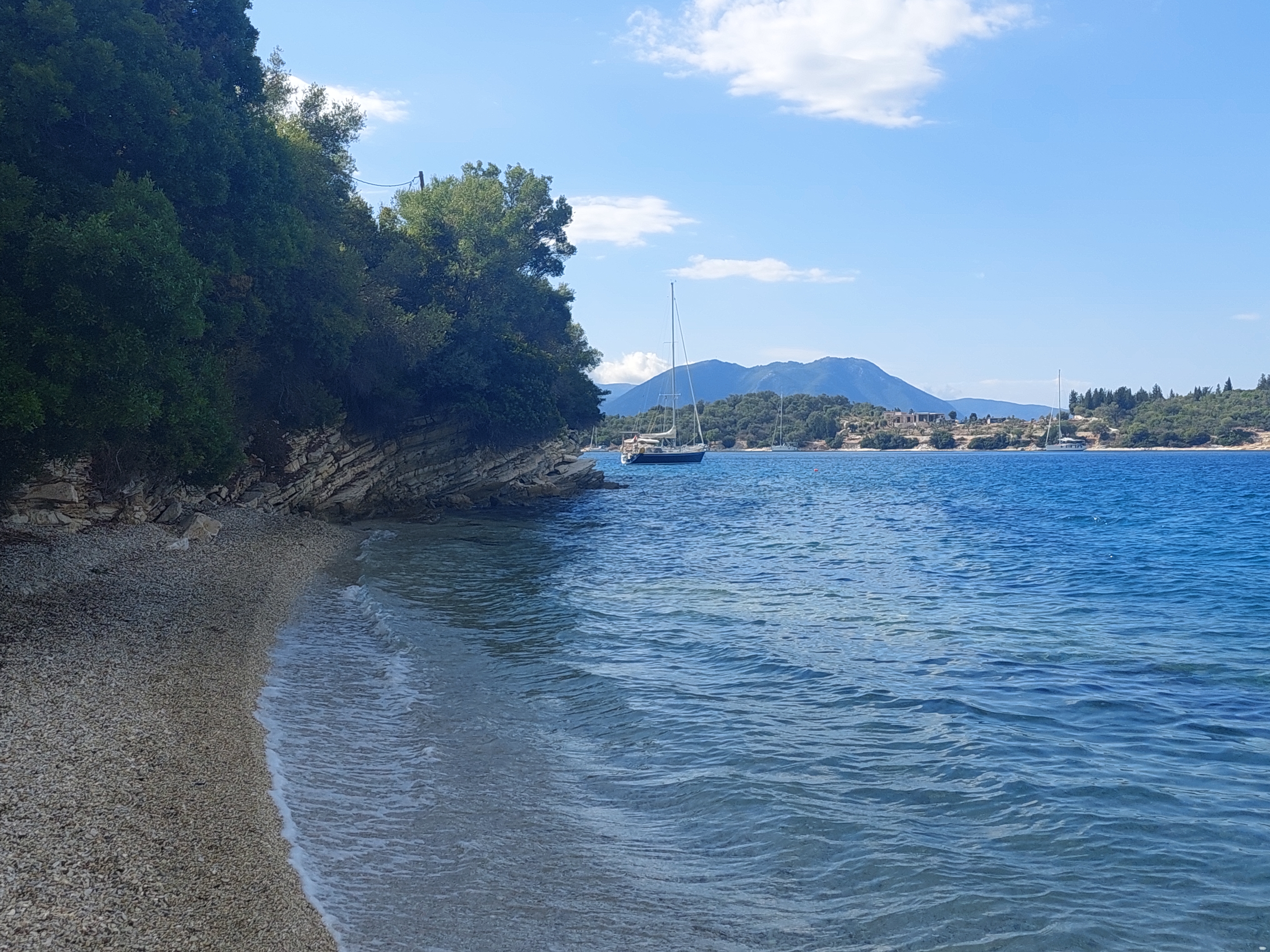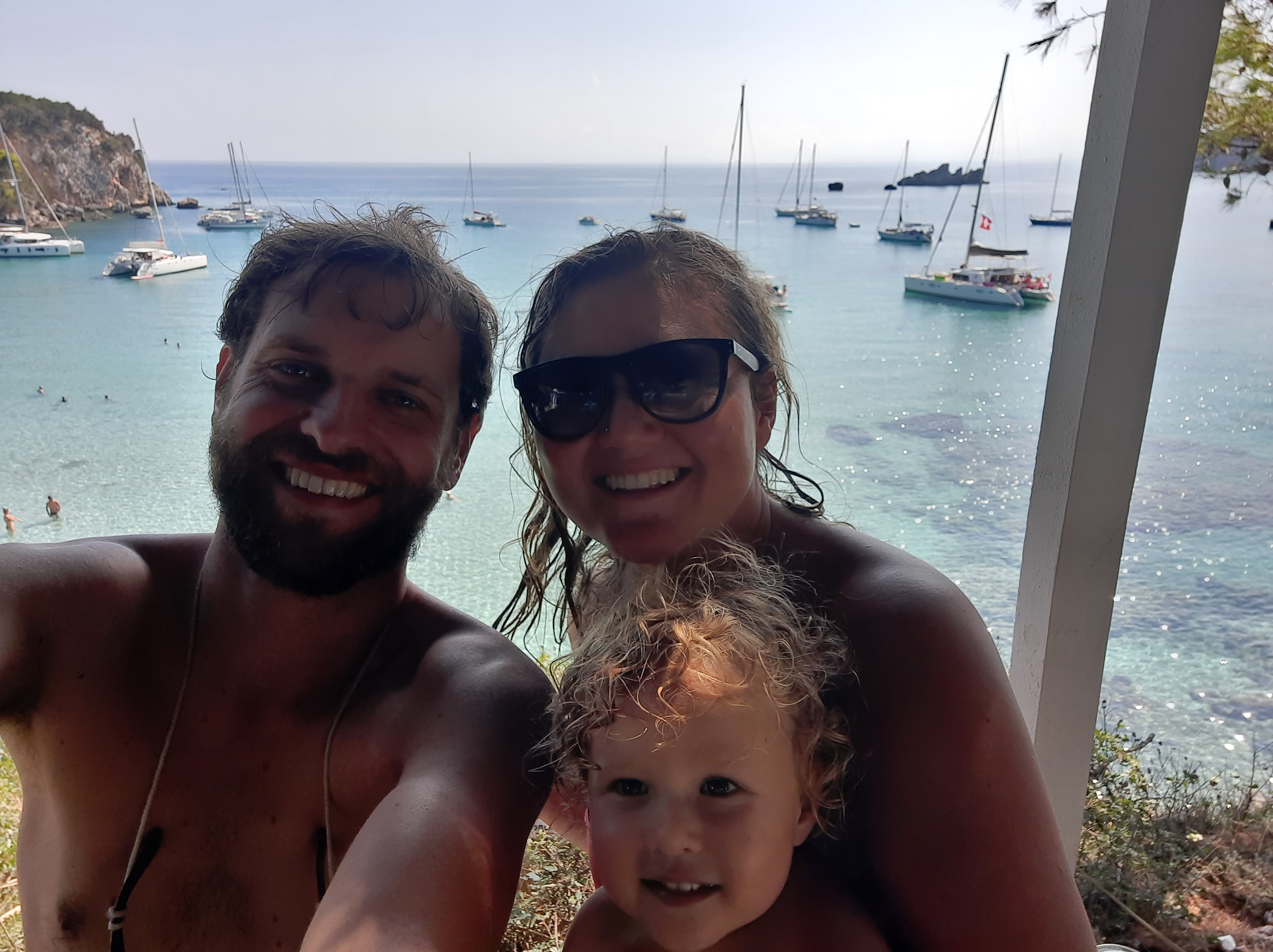 The world moves on and so we did, and on Friday, 28th August we left our beautiful marina in Corfu and headed towards Syvota, a small village on the mainland. After a beach morning for Elena and myself, while Jelle was catching up on work, we moved forward to another beautiful bay, called 2 Rocks. We stayed 2 nights in this lovely bay, surrounded by trees and blue crystal waters and a cute beach bar up the hill where you could admire the Caribbean-like view. Elena had a blast meeting and playing all day on the beach with kids her age and it was also refreshing for us to interact with other adults!