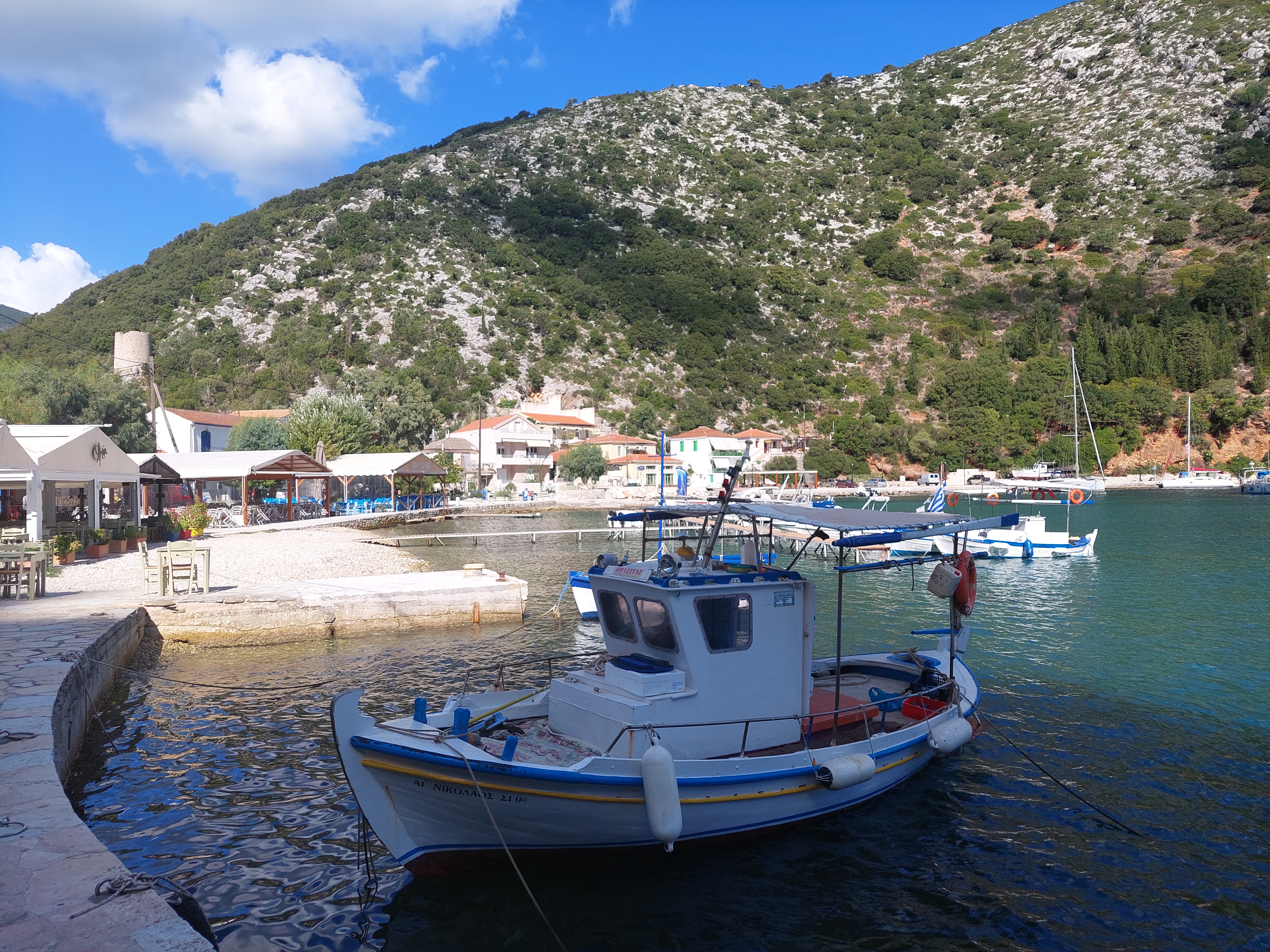 On Monday we put our anchor to the test, with 25 knots of wind and it passed with flying colors! The next day, we rented a car and drove a bit around the island to explore the seaside villages Frikes and Kioni and Ithaca’s oldest vilage, Anogi.